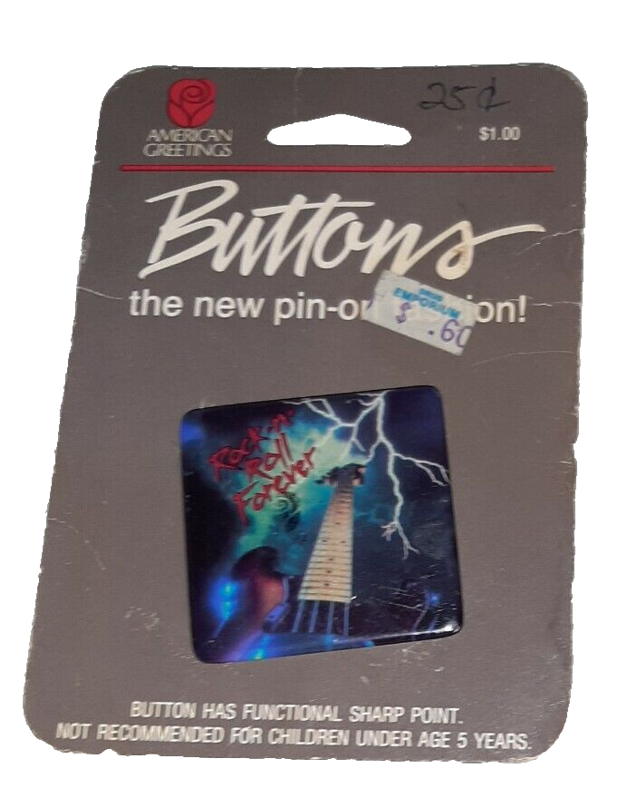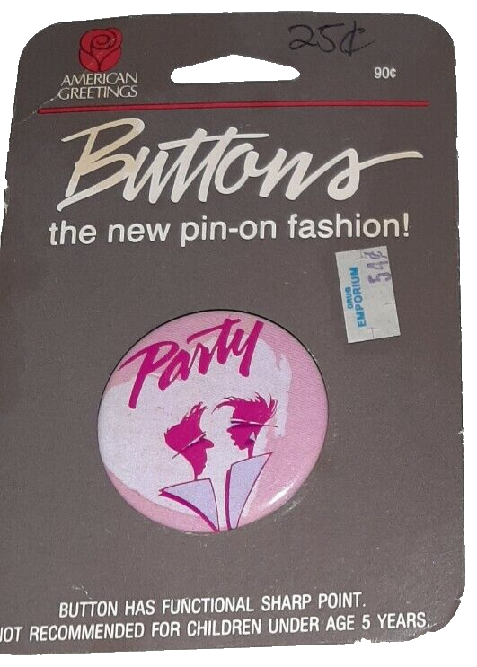 Add some vintage flair to your collection with this lot of three American Greetings button pinbacks. These pins were made in 1985 and feature a fun "Party Rock n Roll Forever" design. They are in excellent condition and ready to be displayed or worn.