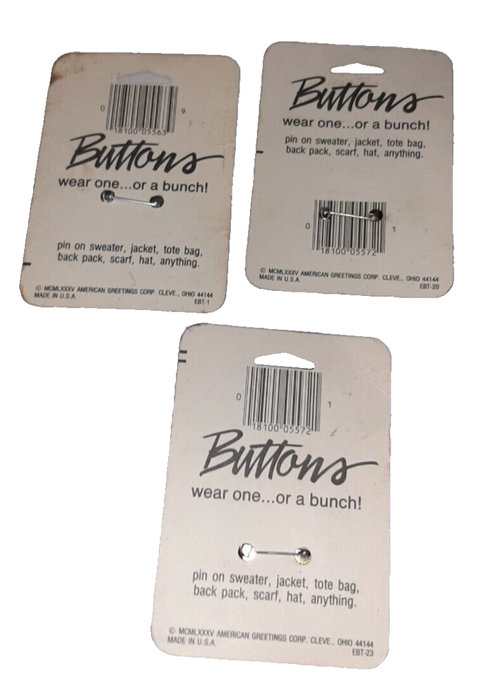 These pinbacks are a perfect addition for collectors of vintage memorabilia or anyone looking for unique accessories. They were made in the United States and are not handmade or modified in any way. Don't miss out on the chance to own a piece of 80s nostalgia with this lot of vintage American Greetings pinbacks.