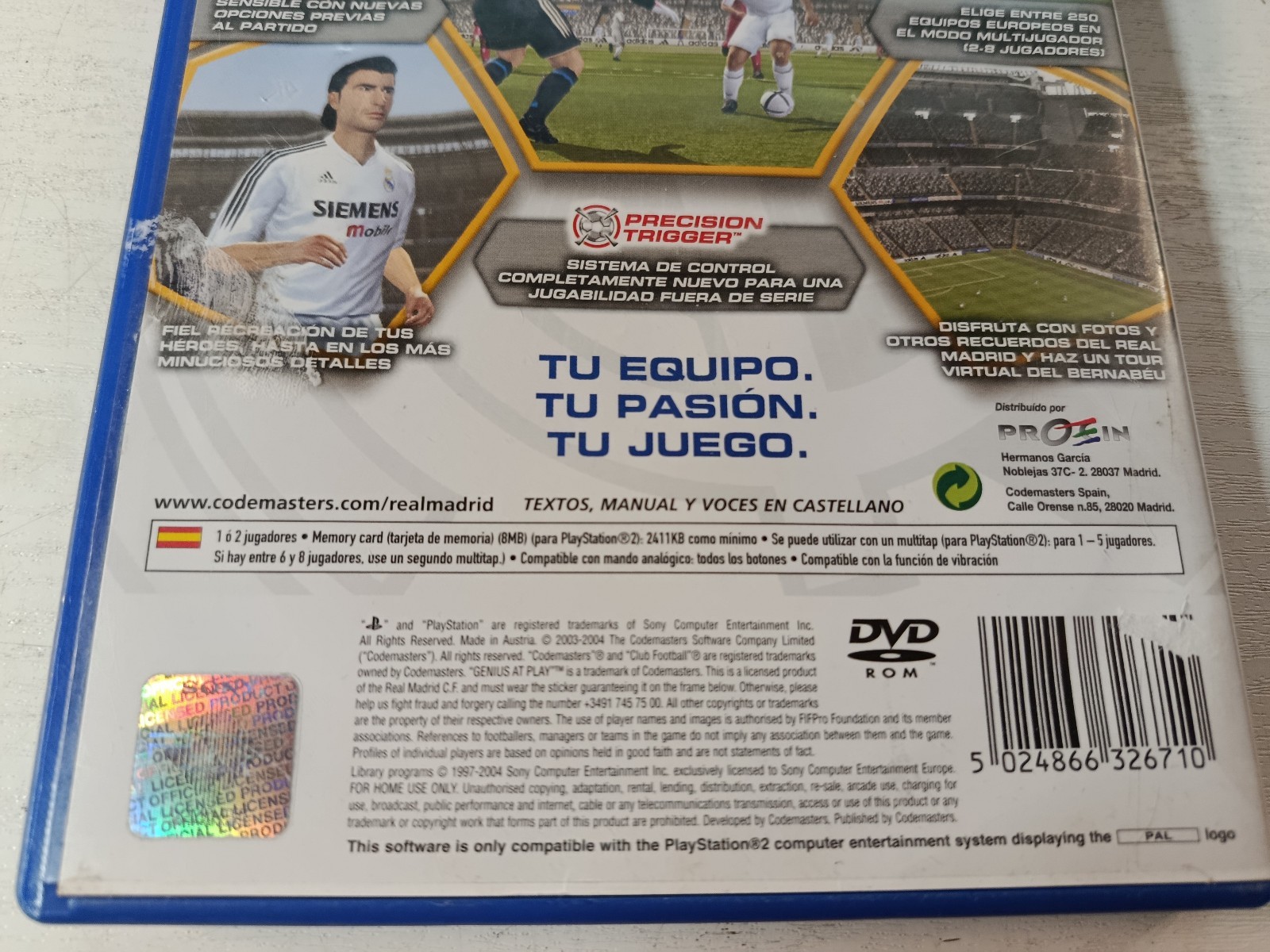 Official del Madrid video game para the 2004-2005 season, developed by CodeMasters. Allows del losvivir The emotionde dress the white shirt and play inel Santiago Bernabeucon iconic figurescomo Zidane, Ronaldo, Raúl or Beckham. Real Madrid, Club Football 2005, CodeMasters, PS2 juego , PlayStation 2, Soccer, Sports Video Game, Zidane, Beckham, Ronaldo, Pal, Football Classic, Retro juego , EAN 5024866326710,juego original,juego used Please, si receiving el articleno You are satisfiedcon Your condition, contact usantesde Leave a neutral or negative assessment. We will solve any problem con and personalized attention. We Are Based in Spain and Offer Carefully Curated Items: Vinyl Records, VHS Tapes, DVDs, Cassettes, Books and Collectibles. We Take Great Care with item Condition, Rarity and Pr