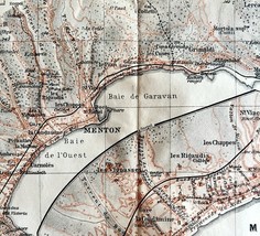 Map Menton Southern France Rare 1914 Lithograph WW1 Era WHBS