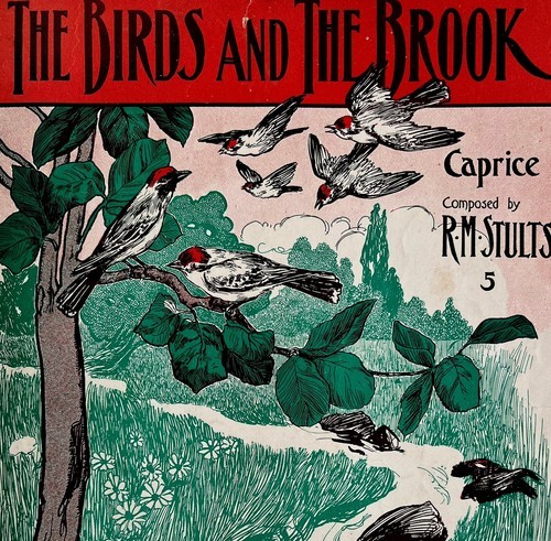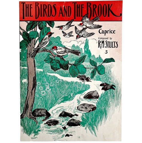 The Birds And The Brook 1900 Victorian Sheet Music COVER Art Lithograph DWEE4