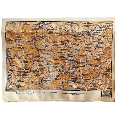 Map D'Azun And D'Ossau Valleys Southern France Rare 1914 Lithograph WW1 Era WHBS