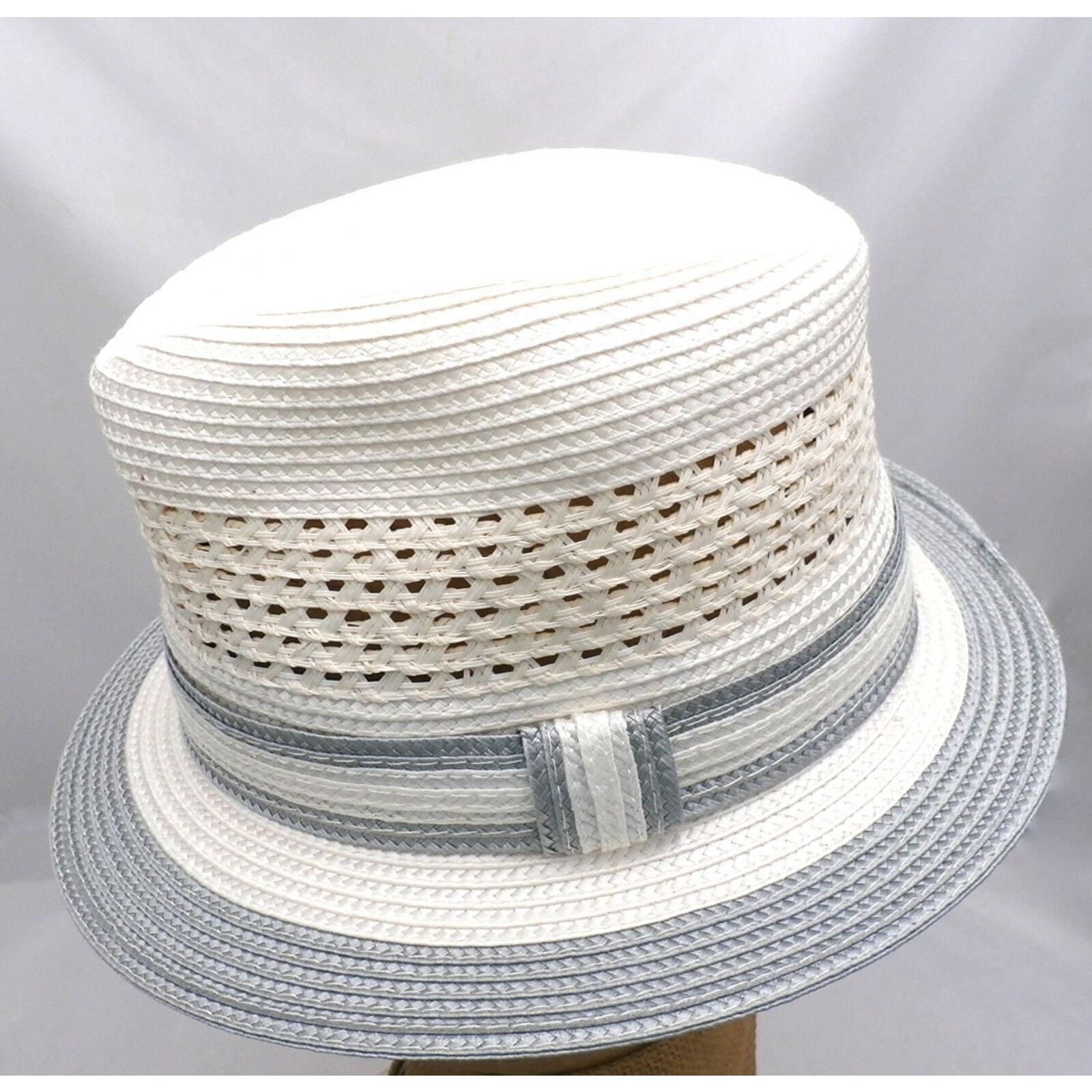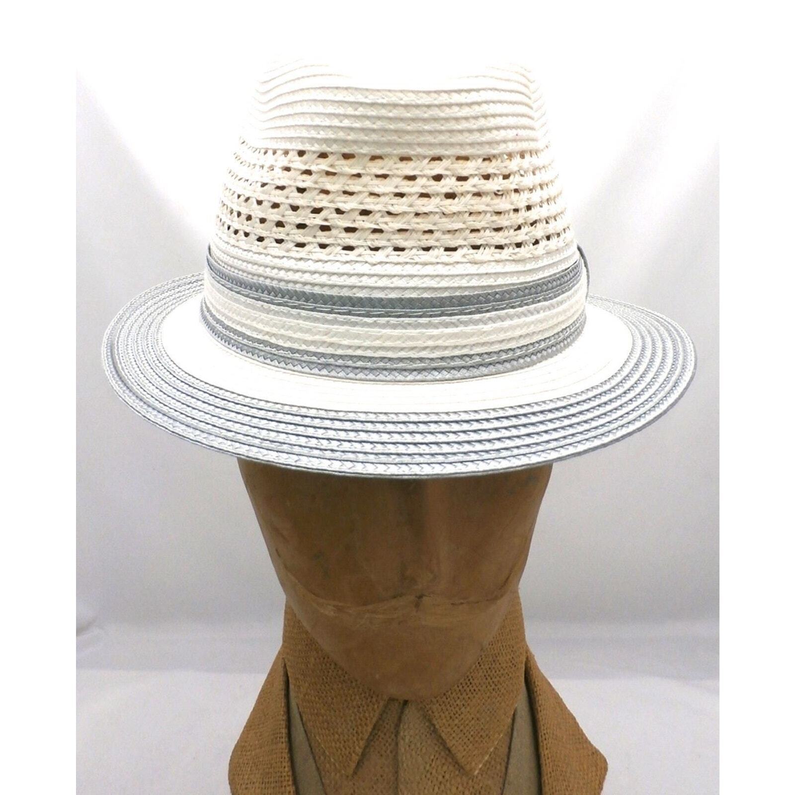 Retro VTG Men's Montique Internationale Trilby Fedora Straw Hat Cream/Grey S NOS