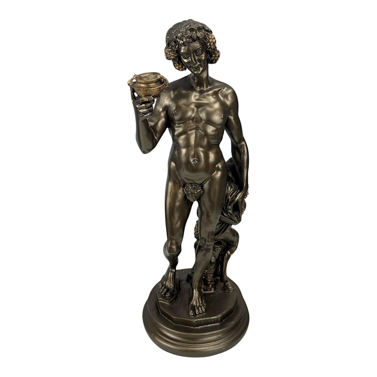 Dios griego romano Dioniso Baco y fauno por Miguel Ángel estatua efecto bronce