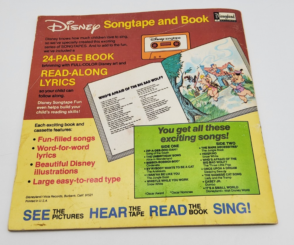 Vintage Disney Songtape The Best of Disney Vol 1 1979 Cassette Tape + Book