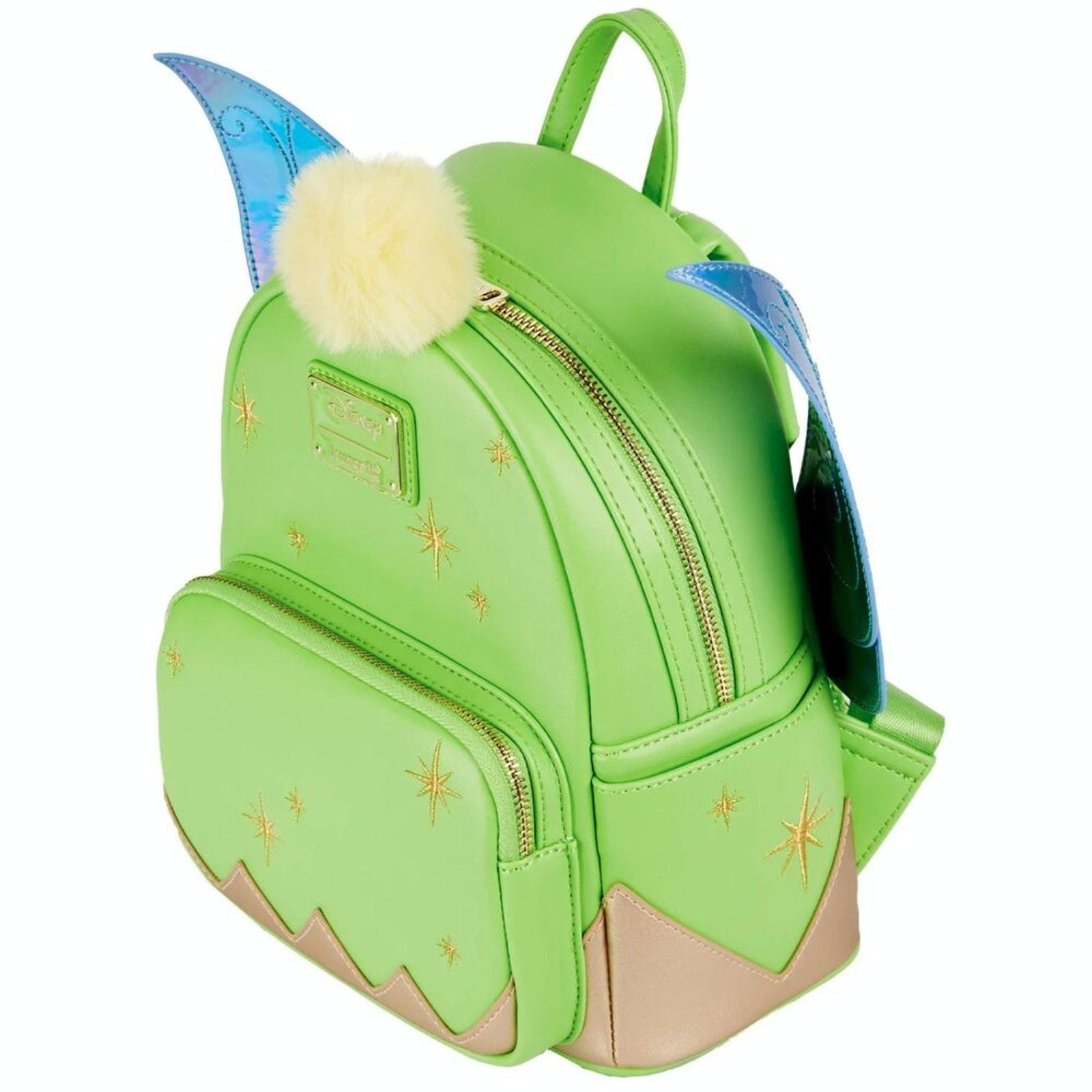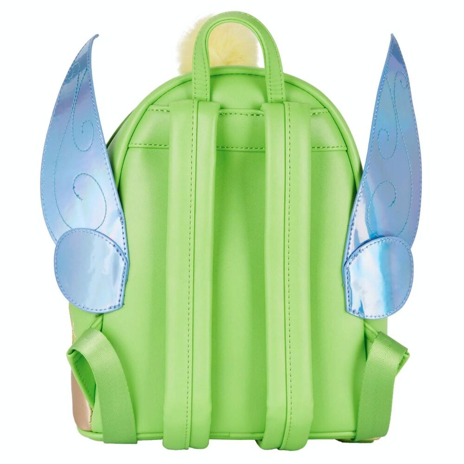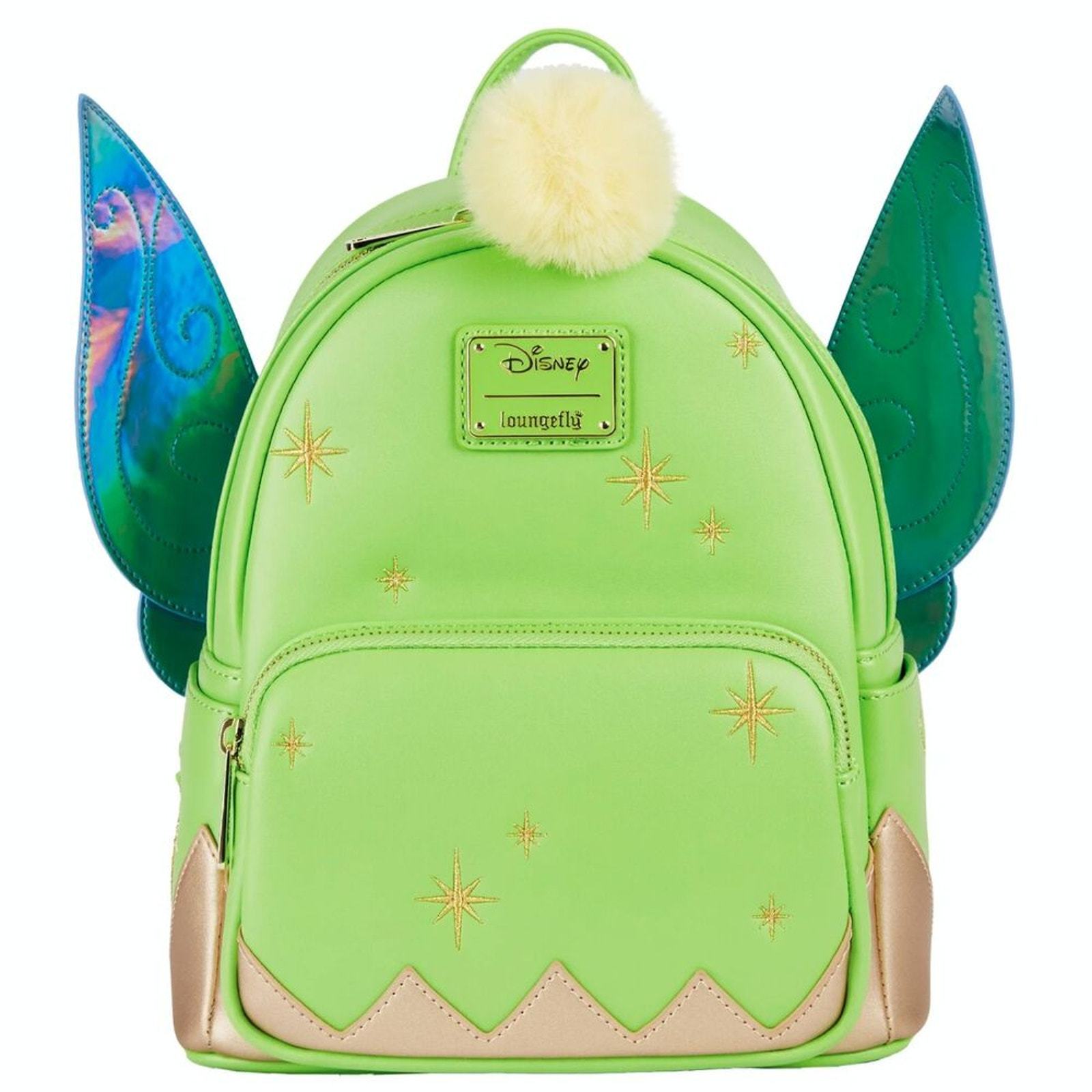 Add a touch of pixie dust to your collection with this Loungefly Disney Tinkerbell Mini Backpack! Featuring stunning iridescent holographic wings, this stylish and magical backpack is a must-have for Disney fans. The design showcases Tinkerbell?s signature fairy charm, complete with a fuzzy pom pom zipper pull for extra whimsy. Crafted with high-quality faux leather, this mini backpack is perfect for carrying your essentials to the Disney parks, everyday outings, or displaying as a collector?s piece.