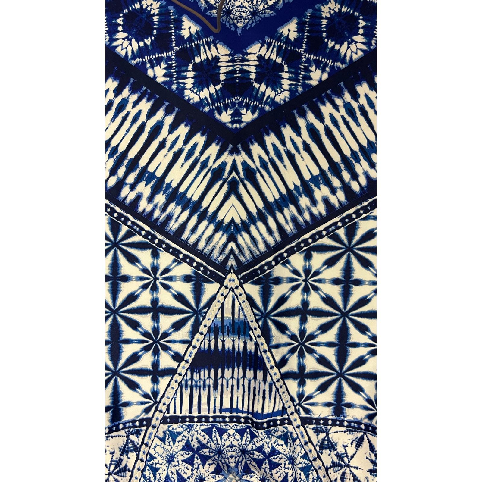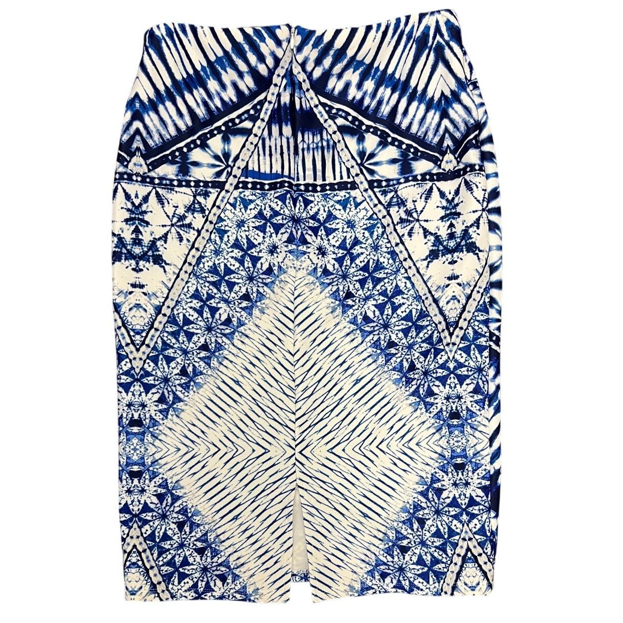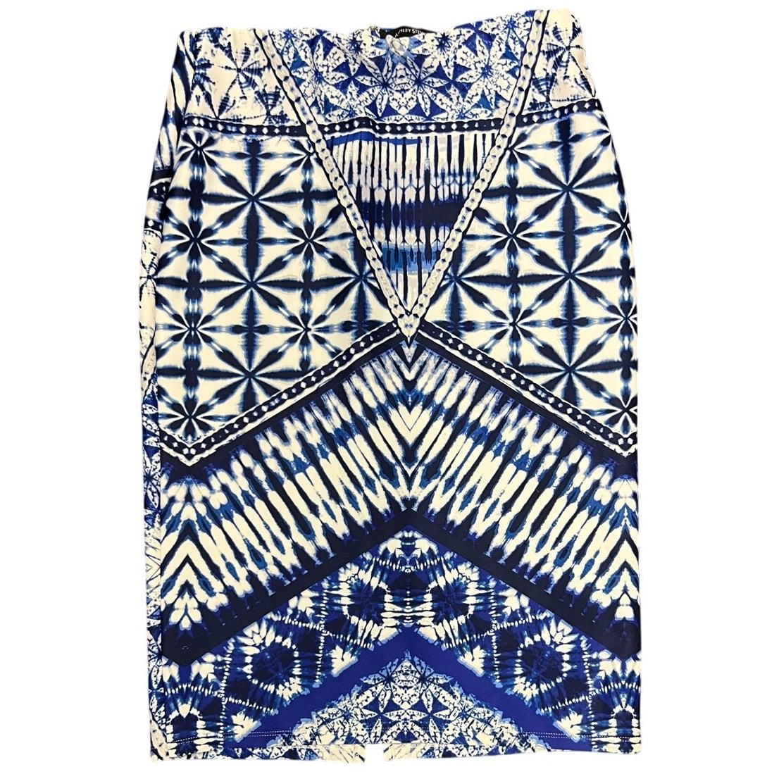 ? Ashley Stewart Size 12 Pencil Skirt Blue White Geometric Boho Y2K Stretch