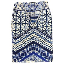 Ashley Stewart Size 12 Pencil Skirt Blue White Geometric Boho Y2K Stretch