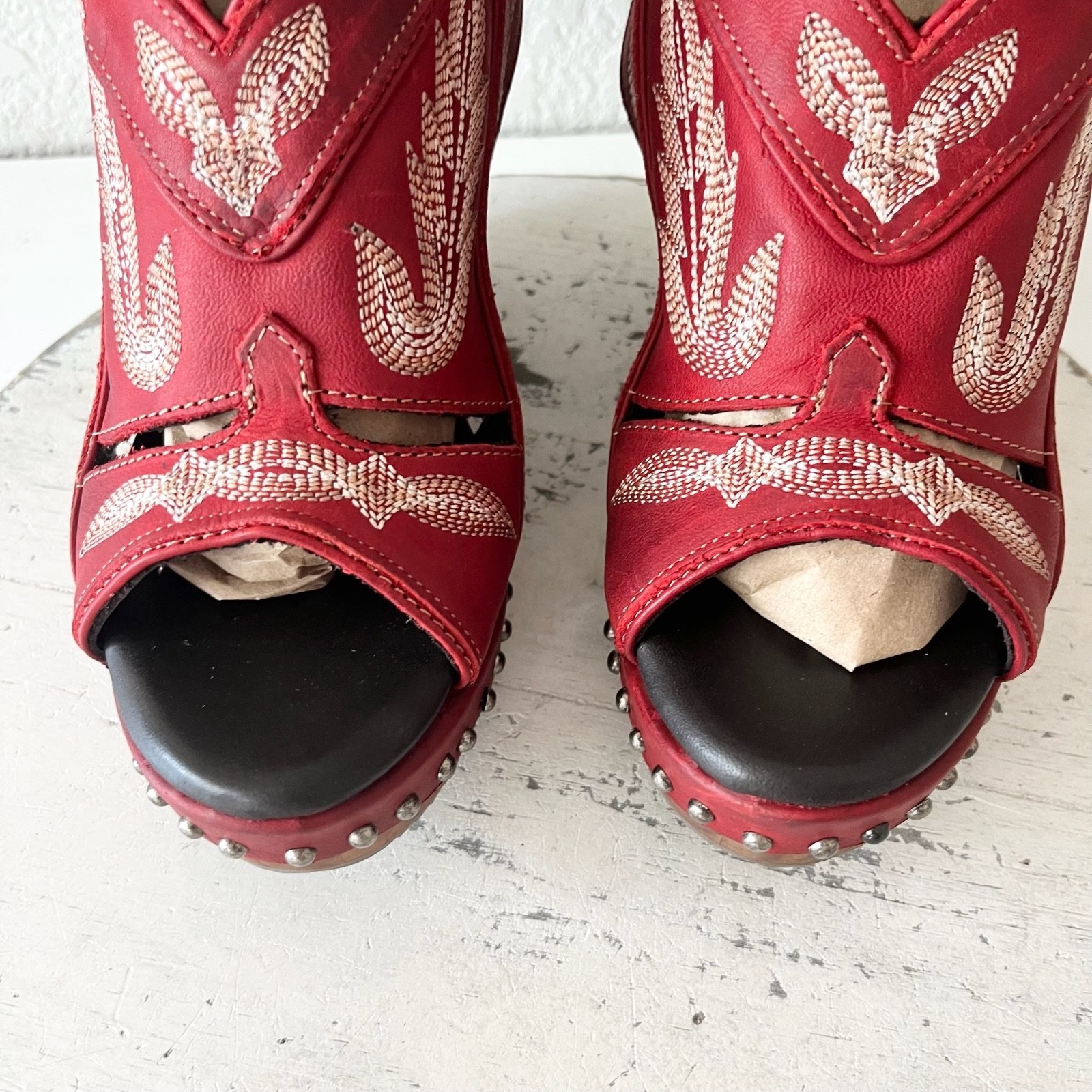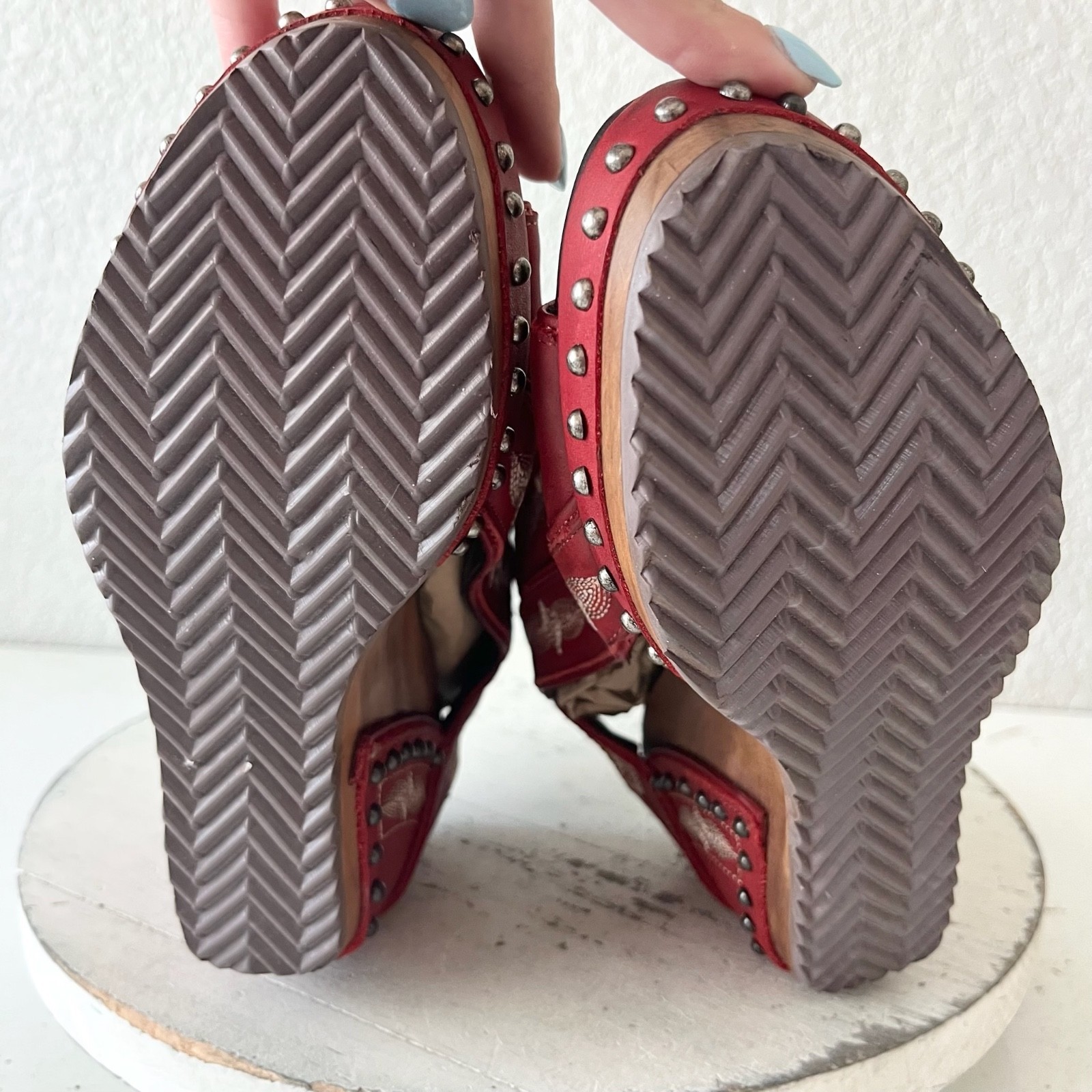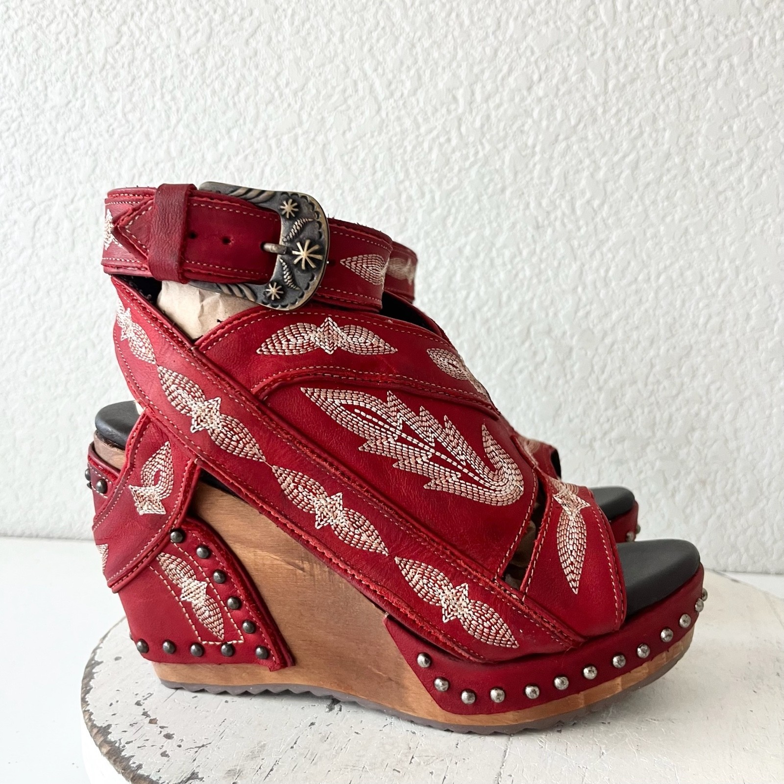 NEW Lane Boots LEXINGTON Womens Red Wedges 6 Western Sandals Cowgirl Wooden Heel