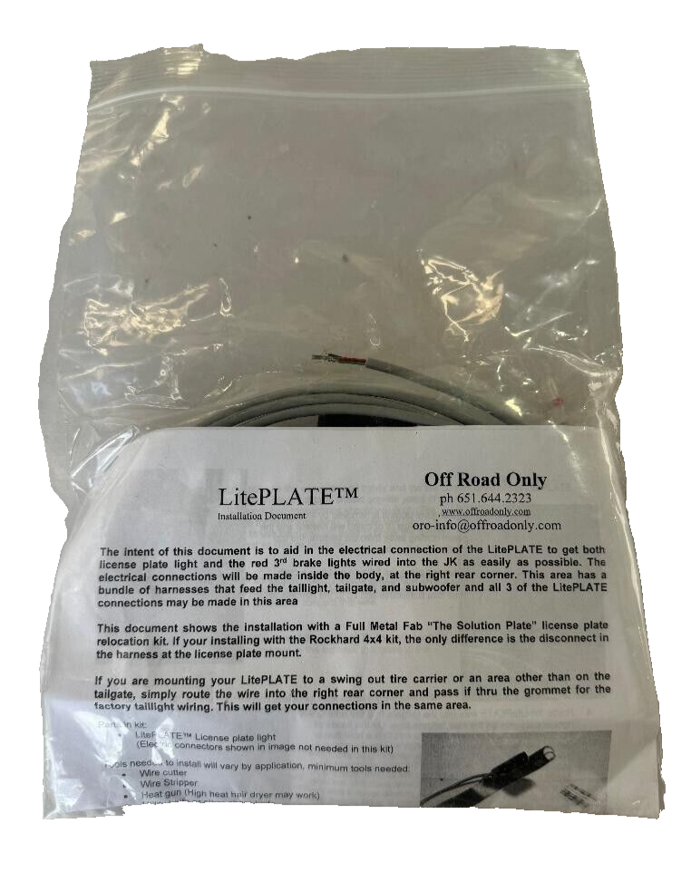 JEEP JK LITEPLATE 3RD BRAKELIGHT LICENSE PLATE LIGHT KIT PLATE RELOCATION