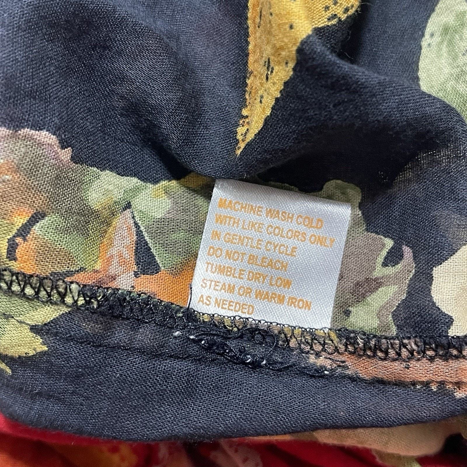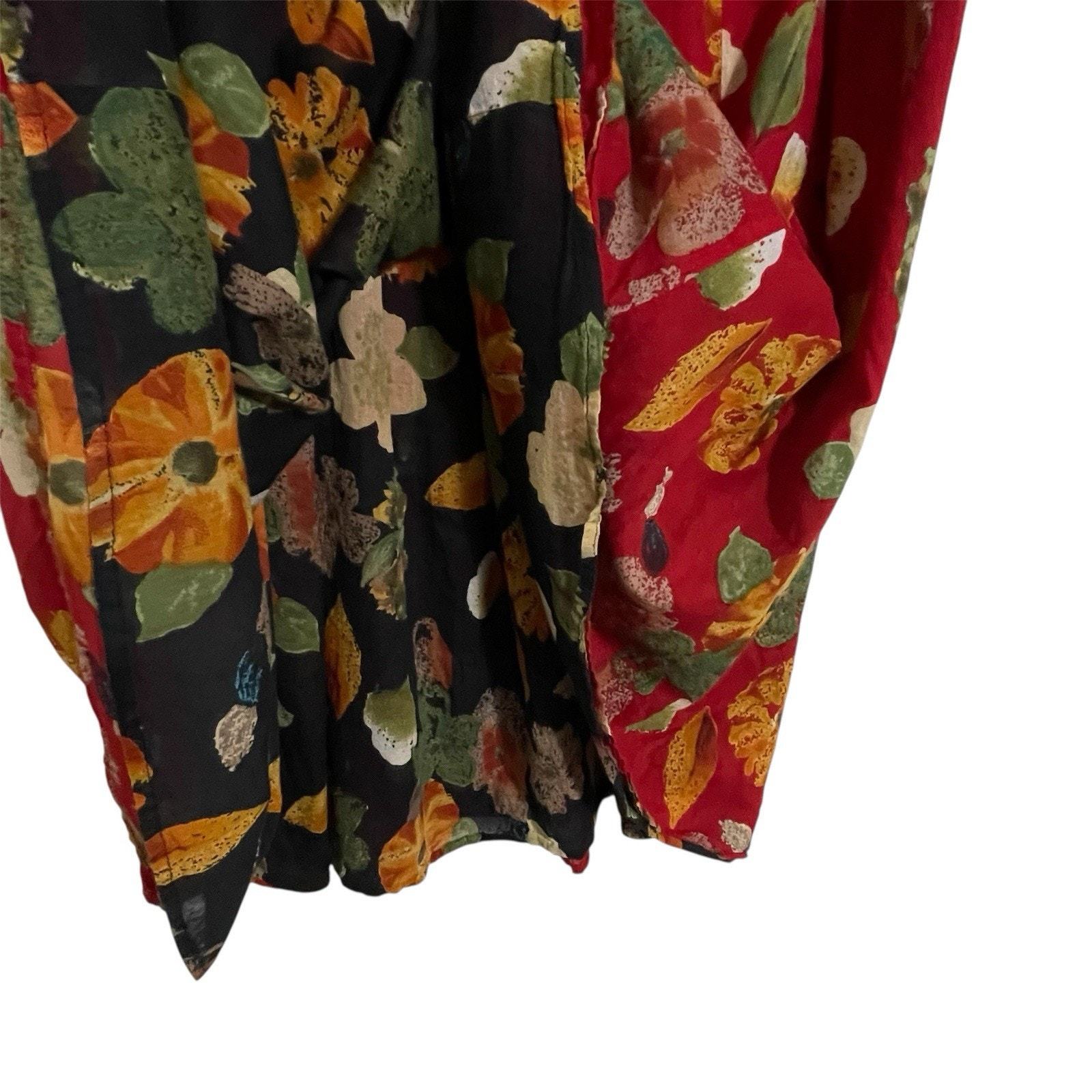 La Cera Reversible Dark Floral Midi Skirt Size L Red Black Elastic Waist Fall