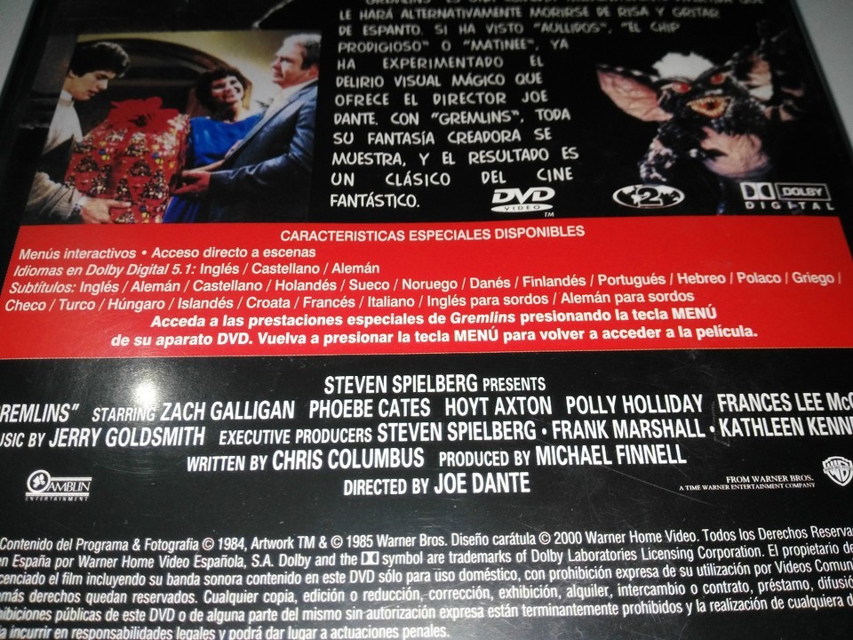 GREMLINS DVD STEVEN SPIELBERG CASTELLANO ENGLISH ALEMAN