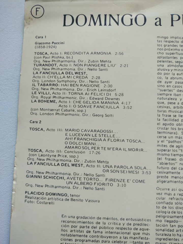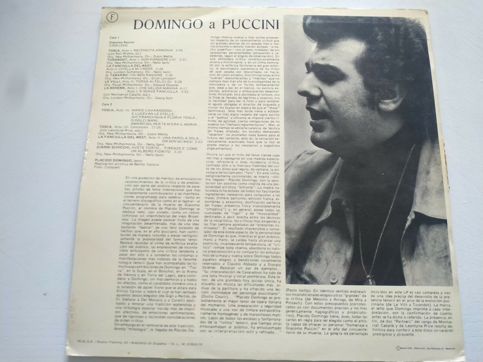 Placido Domingo a Puccini Tenor RCA 1974 - LP 12" Vinilo VG/VG