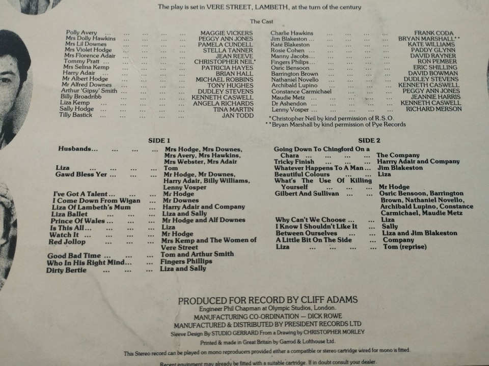 Liza Of Lambeth Original Cast Recording John Fenston 1976 - LP vinyl 12 " G+