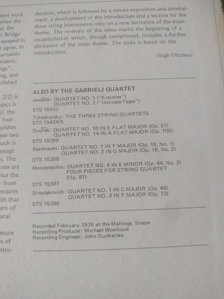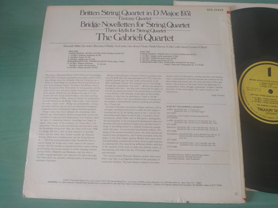 The Gabrieli quartet Bridge String Fantasy 1977 - LP 12" Vinilo VG/VG