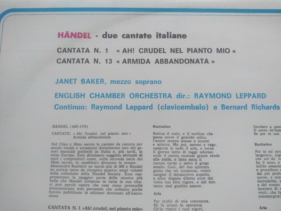 Handel Cantata No 1 - 13 Janet Baker Leppard EMI - LP 12" Vinilo VG/VG