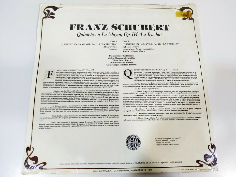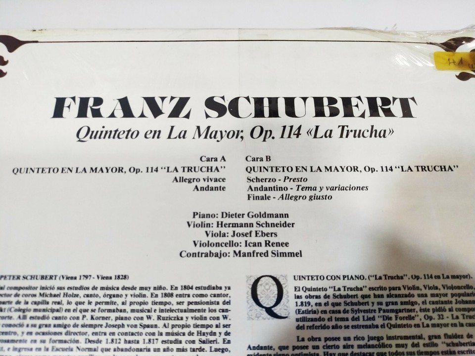 Franz Shubert Quinteto La Mayor Op 114 La Trucha - LP Vinilo 12" VG/VG