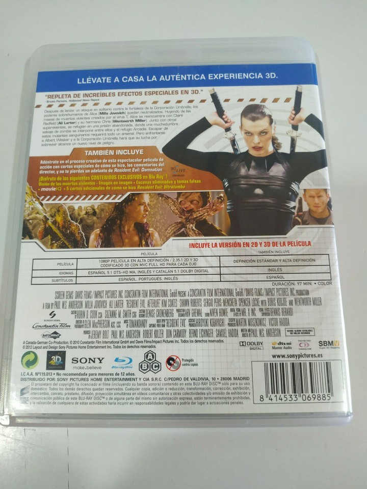 Resident Evil Ultratumba Mila Jovovich - Blu-Ray 3D Español Ingles - 3T