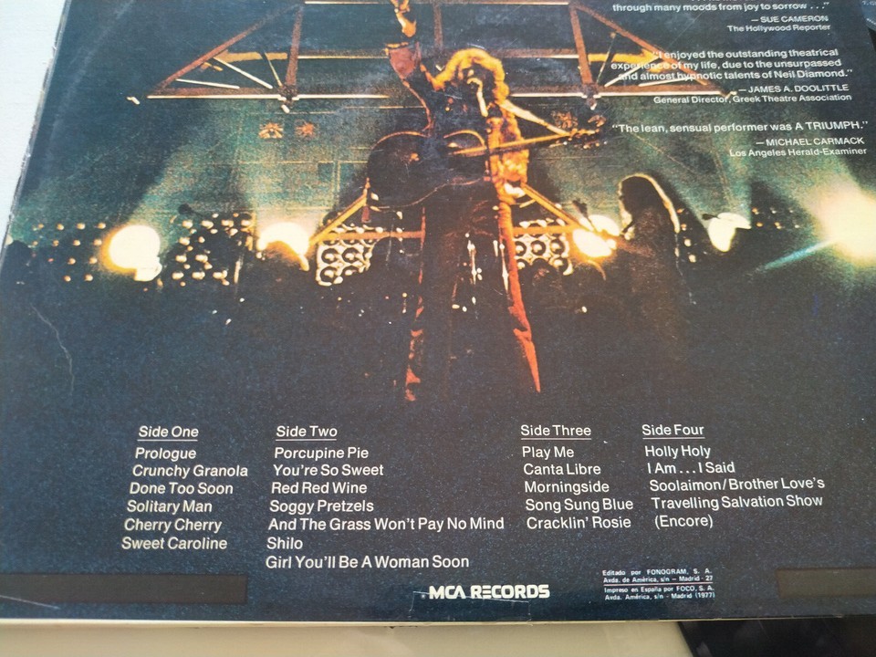 Neil Diamond Hot August Night MCA 1977 Spain Press 2 x LP 12" Vinilo VG/VG 2T