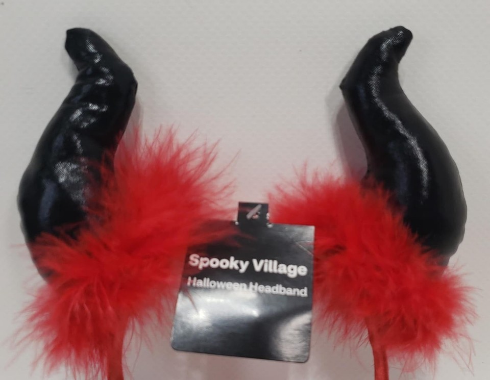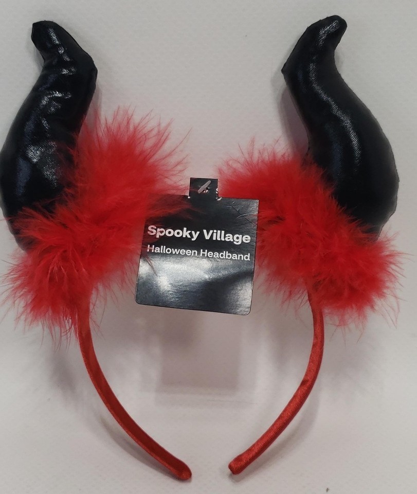 Spooky Village Devil Horns Gothic Headpiece Halloween Headband Red /Black