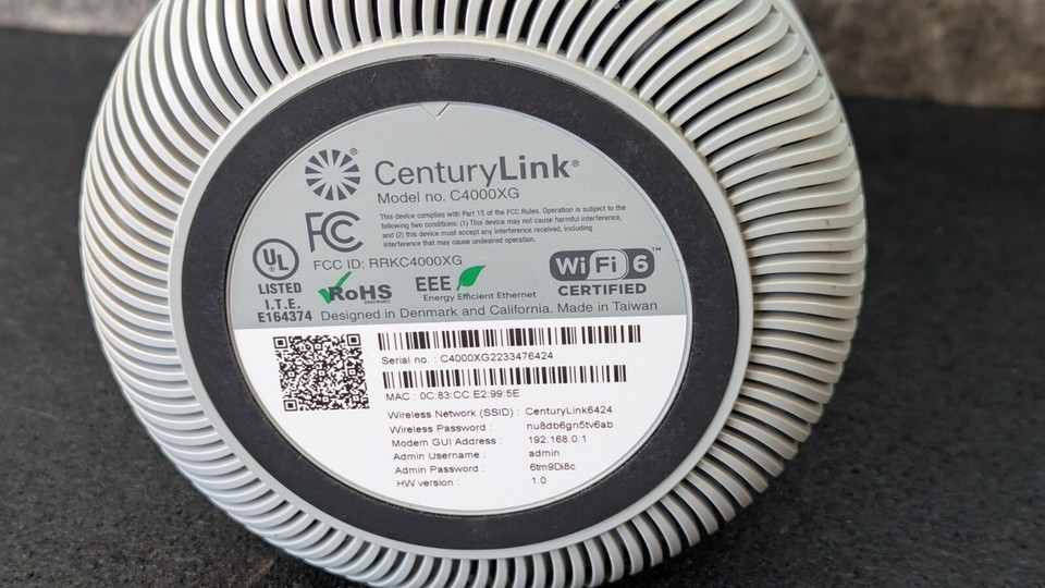 Centurylink C4000XG 940Mbps Dual Band Wi-Fi 6 Router/Modem + Cables