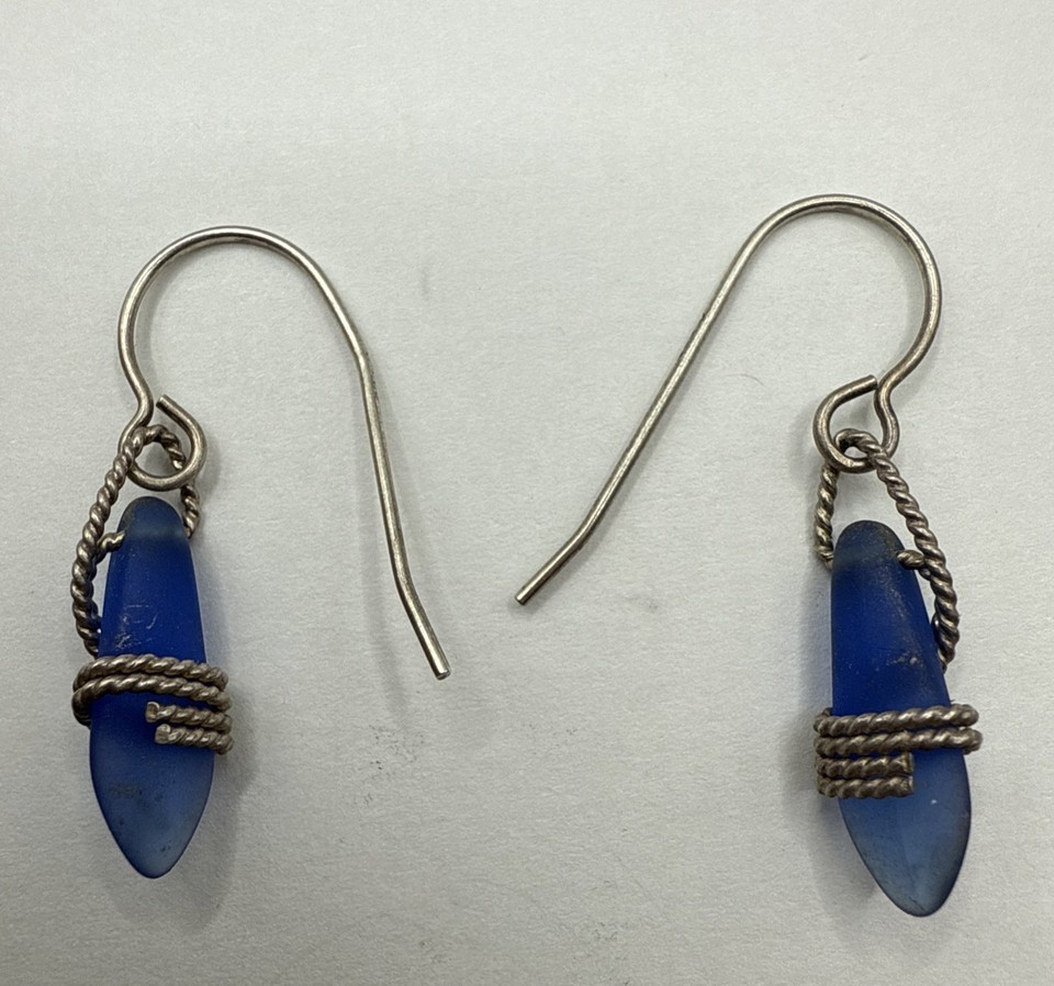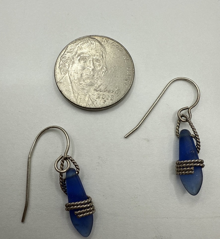 925 Sterling Silver Brilliant Turquoise Seaglass Earrings, Handmade.