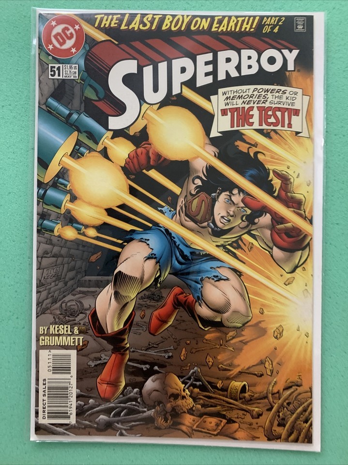 This is an amazing comic book featuring Superboy in his iconic red and blue outfit. It is a single issue of the series titled "Superboy #51" by DC Comics, published in 1998. The story follows the adventure of The Boys superhero team as they try to save the world from destruction.