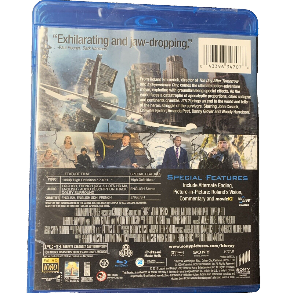 Experience the epic action and drama of the 2012 Blu-ray Disc, directed by Roland Emmerich. This Sony Pictures release features a PG-13 rating and is a must-have for fans of the thriller genre. The movie takes you on a journey through the world of disaster and destruction, with stunning visuals and heart-pumping action.