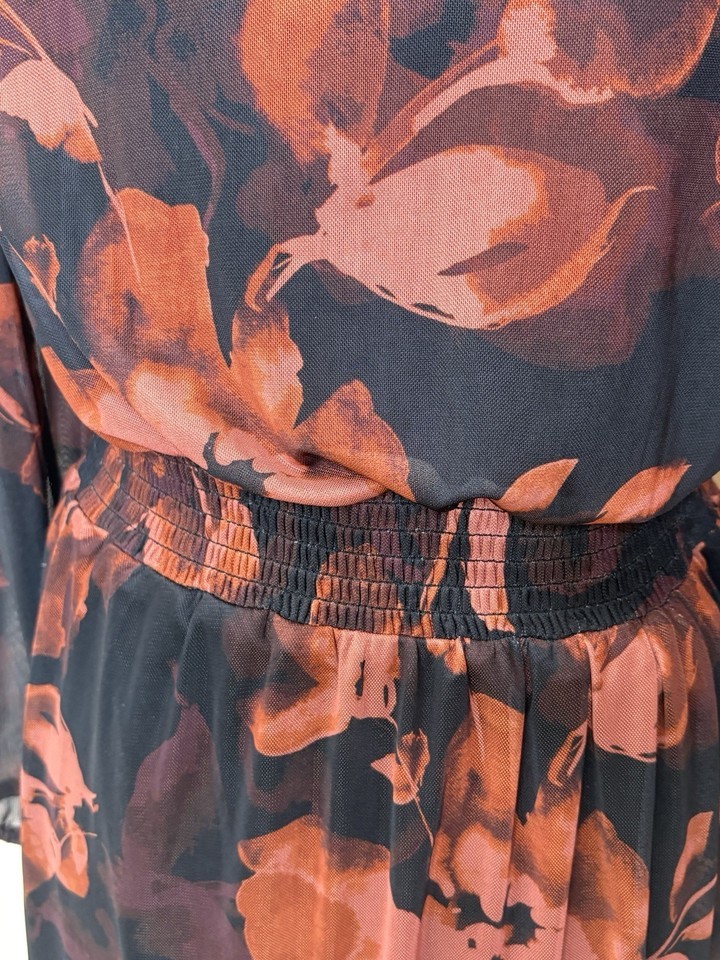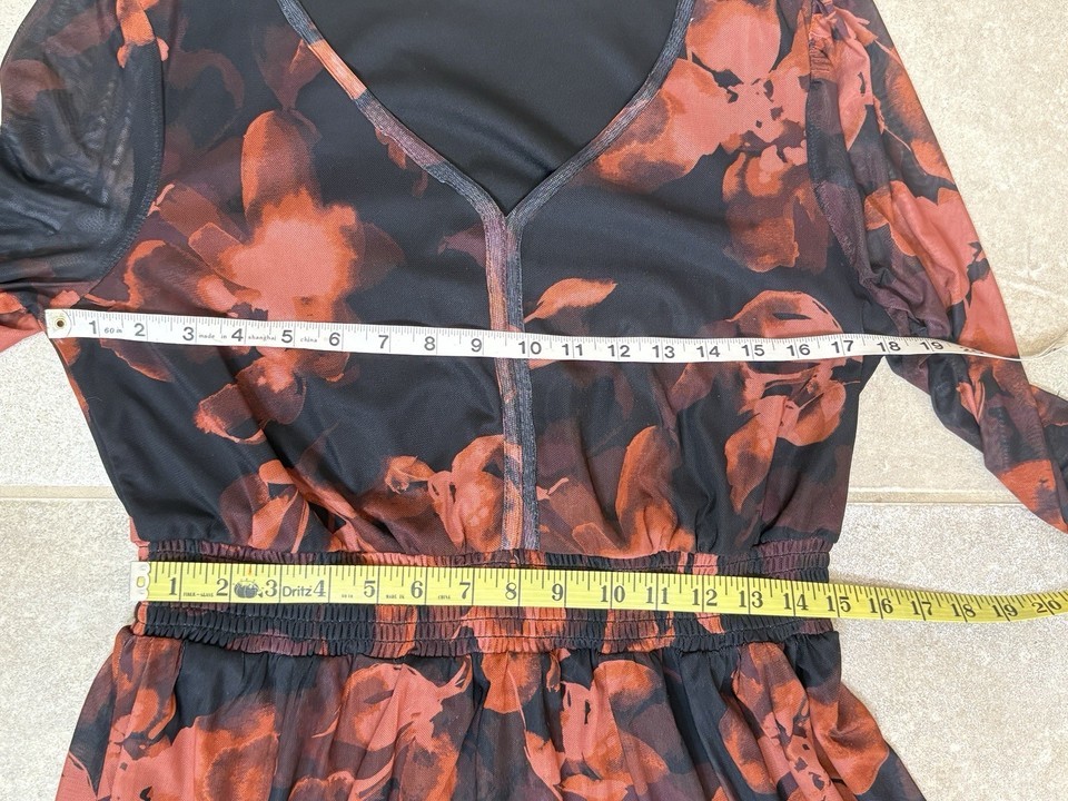 Black & Burnt Orange Floral Mesh V-Neck Dress Halloween Fall Work Career Church