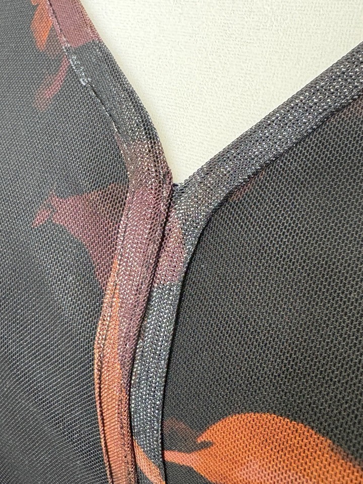 Black & Burnt Orange Floral Mesh V-Neck and similar items