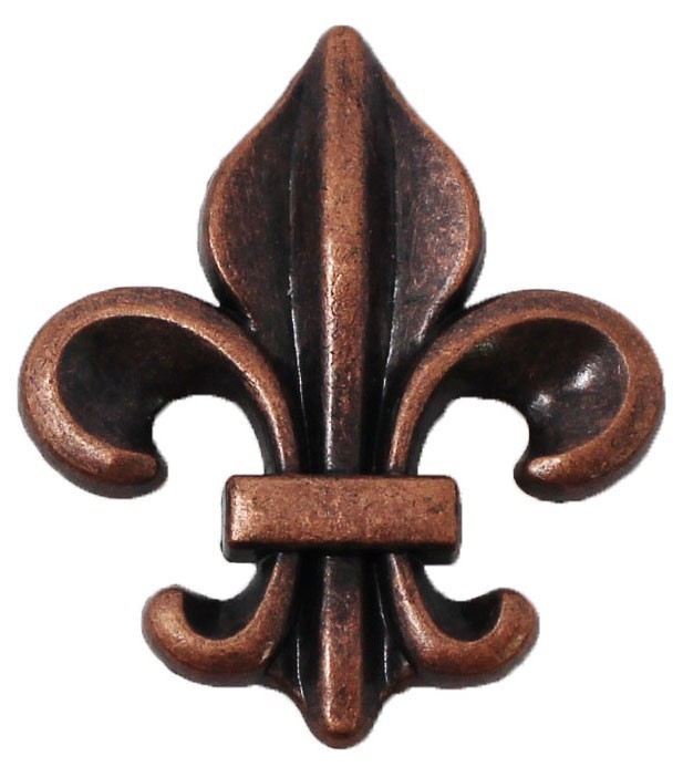 Set of 4 screw back copper Fleur De Lis conchos. Measures 1 1/4" (32 mm) in diameter. Easy to install with chicago screws included. Beautifully accents any tack, saddle, belt, etc.