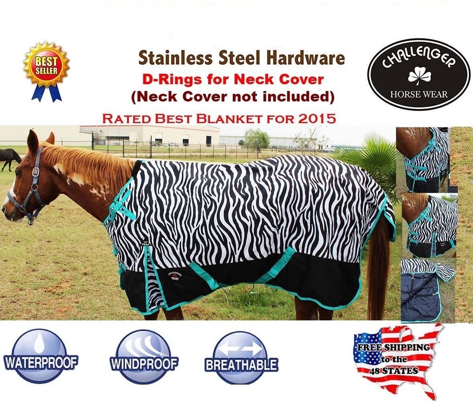 80" 1000D Turnout Waterproof Horse WINTER Coat BLANKET Zebra 104