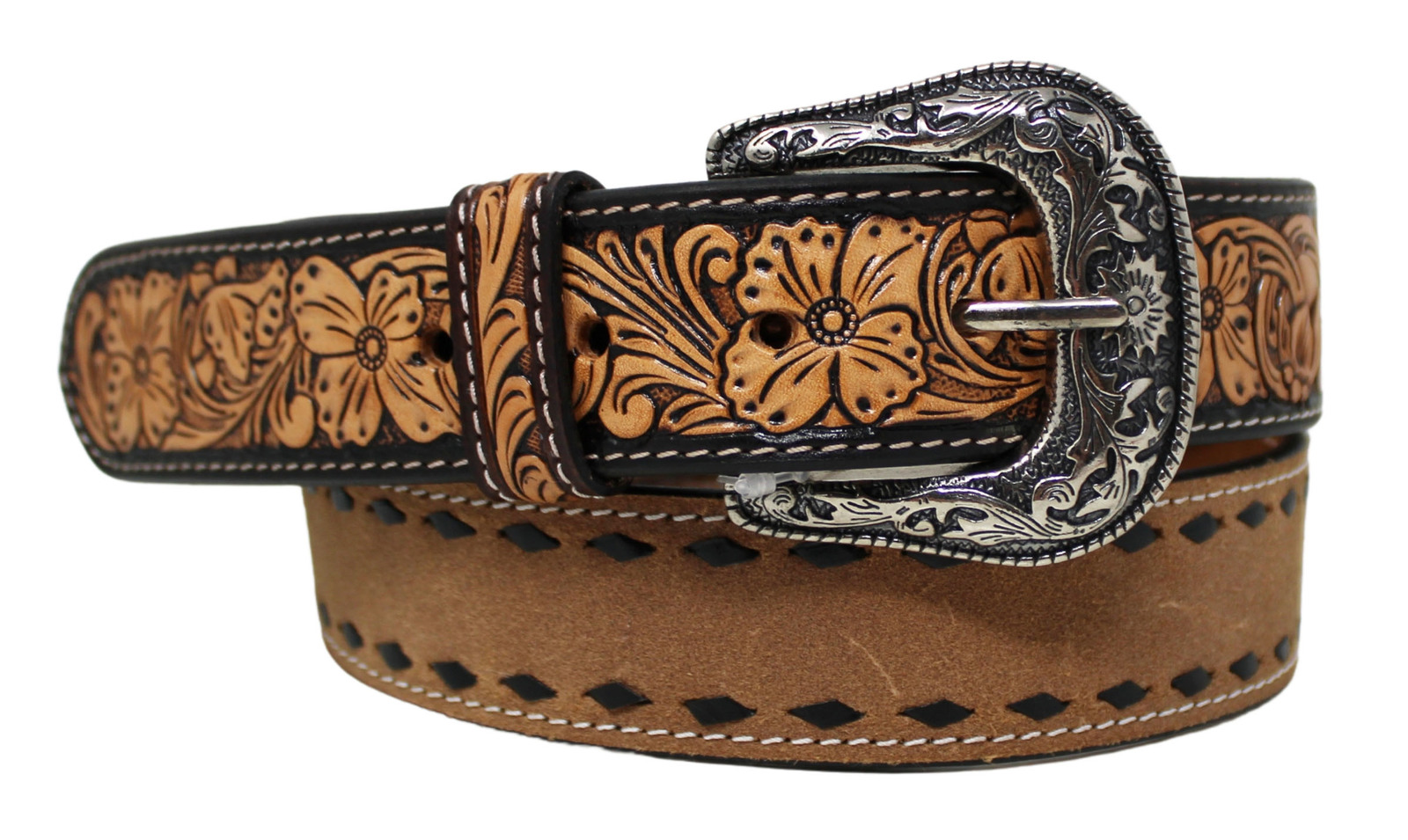 38 Western 1 1/2" Wide Men Women Rodeo Floral Tooled Suede Leather Buckstitch
