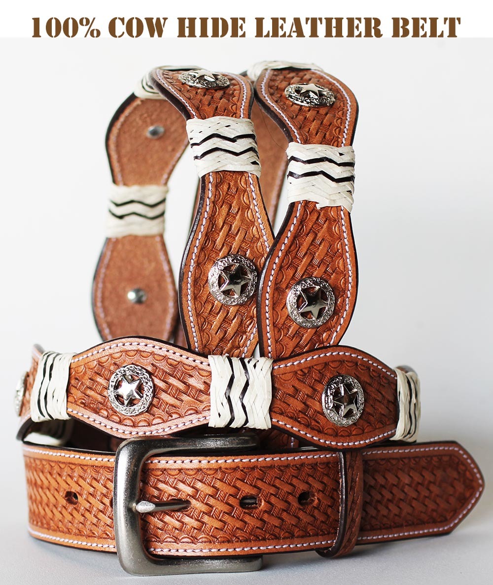 Tan Leather Western Hand Tooled Basket Weave and 46 similar items