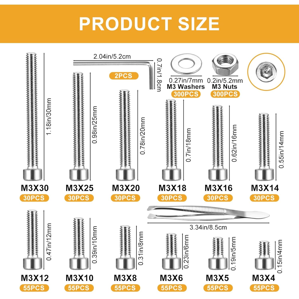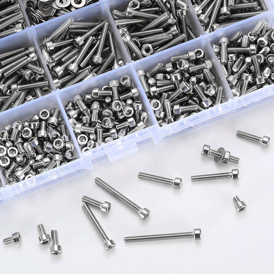 Total: 1110PCS Stainless Steel Hex Socket Head Cap Screws, Nuts Washers