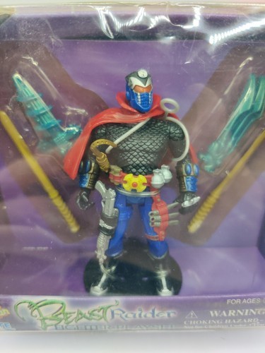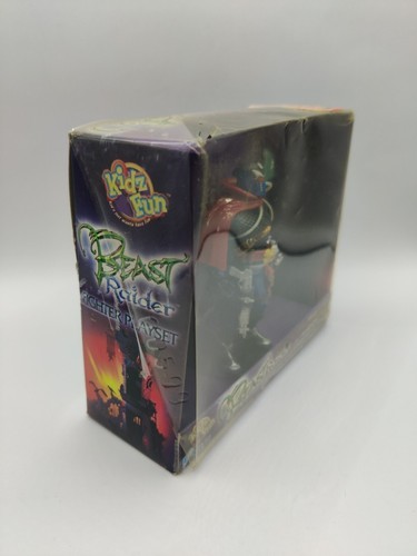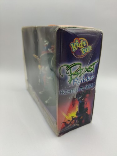 This is a vintage Kidz Fun Excite Beast Raider Fighter Playset toy from the BeastRaider franchise. The multicolor set includes a Beast figure with accessories. The playset is boxed in original worn packaging and is suitable for children aged 3 and older. Made in China by the Excite brand, it offers a fantasy-themed play experience.