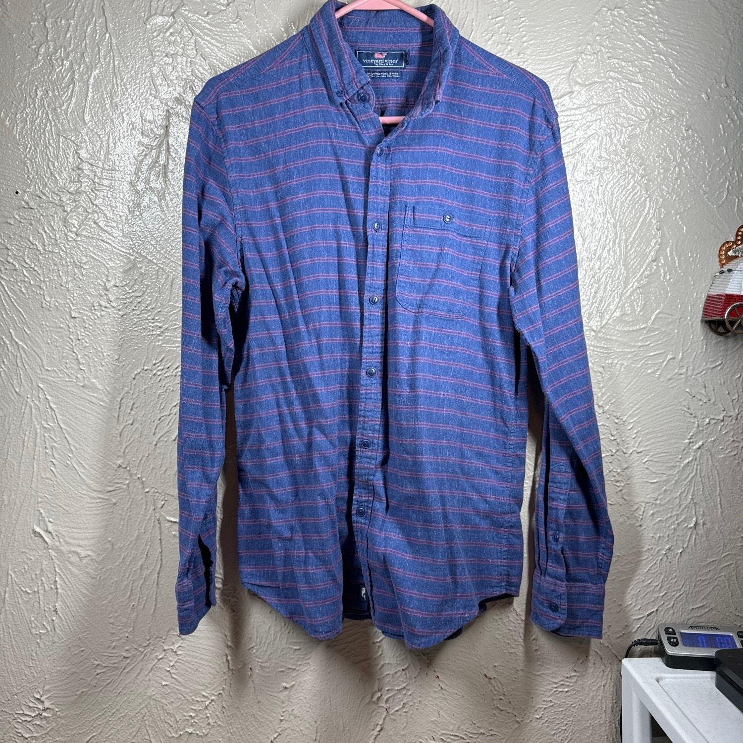 Vineyard Vines Slim Longshore Shirt Men's Blue Striped Long Sleeve Size SmallThis item has been cleaned pers used clothing policy.