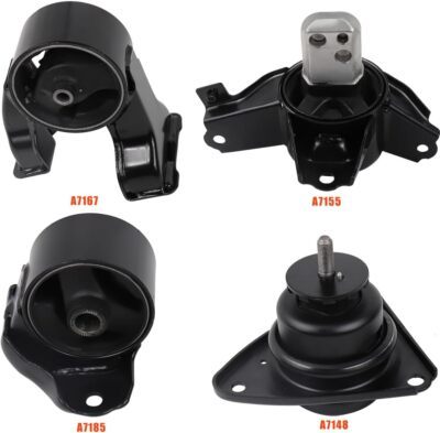 Compatible Vehicles: Motor mount set fit for Hyundai Elantra L4 2.0L hatchback 2007-2012 automatic transmission. OEM: A7185, 9360, 9357, 219102H150; A7148, 9345, 218100Q000, 218102H000; A7167, 9316, 219302H000, 219302H050; A7155, 9339, 218302H100. Mounting Positions: 1x A7185 Front motor mount, 1x A7148 Front right motor mount, 1x A7167 Rear motor mount, 1x A7155 Transmission mount. Smooth Driving: Replacing old and damaged engine mounts and gearboxes can improve driving comfort and safety, say goodbye to vibration and noise, and make your car drive quiet and smooth. Note: Please check if this product is compatible with your car, if you have any questions, please feel free to contact us, we will reply within 24 hours.