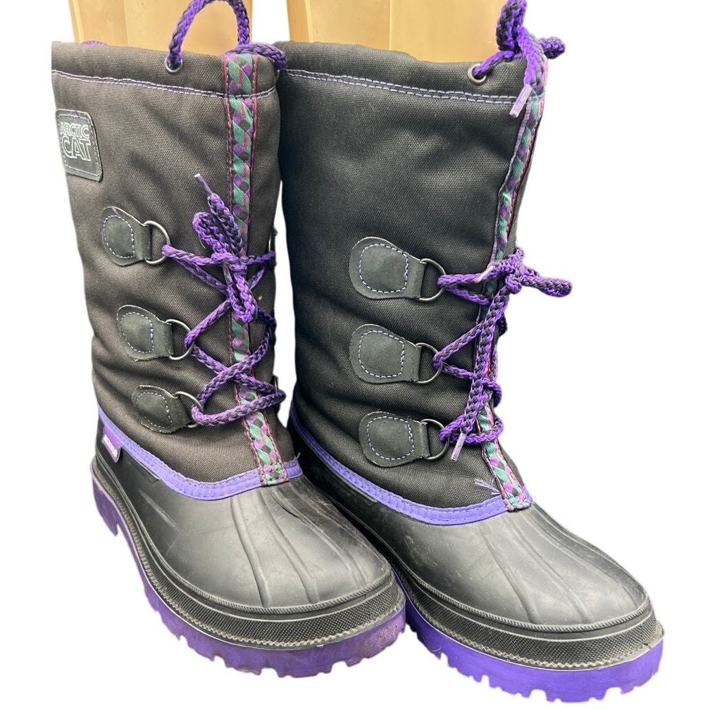 ? Arctic Cat ArcticWear Winter Snow Boots Black Purple Made Canada Size 7 VTG
