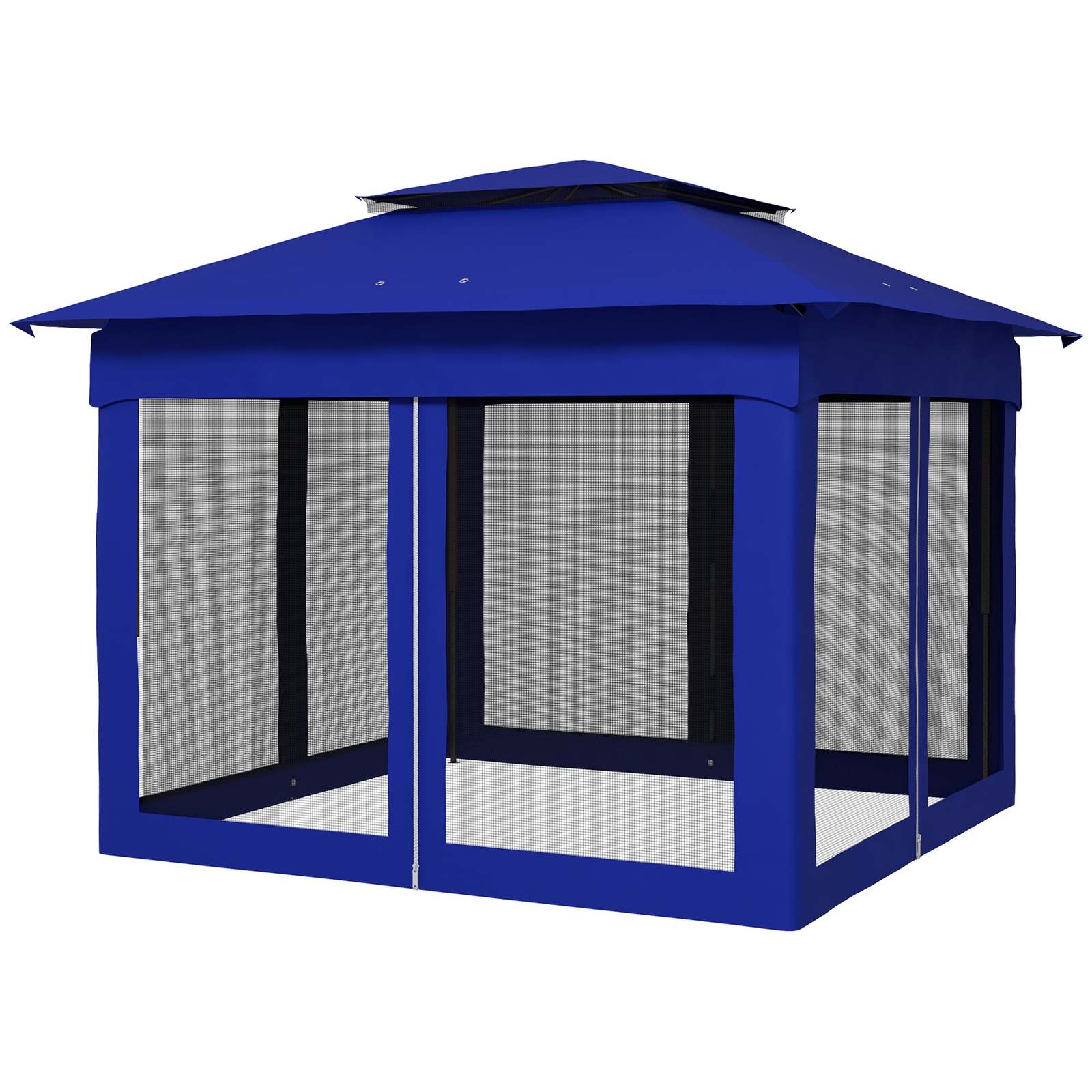 Outsunny 11'x11' Pop Up Canopy Gazebo with Netting - Blue