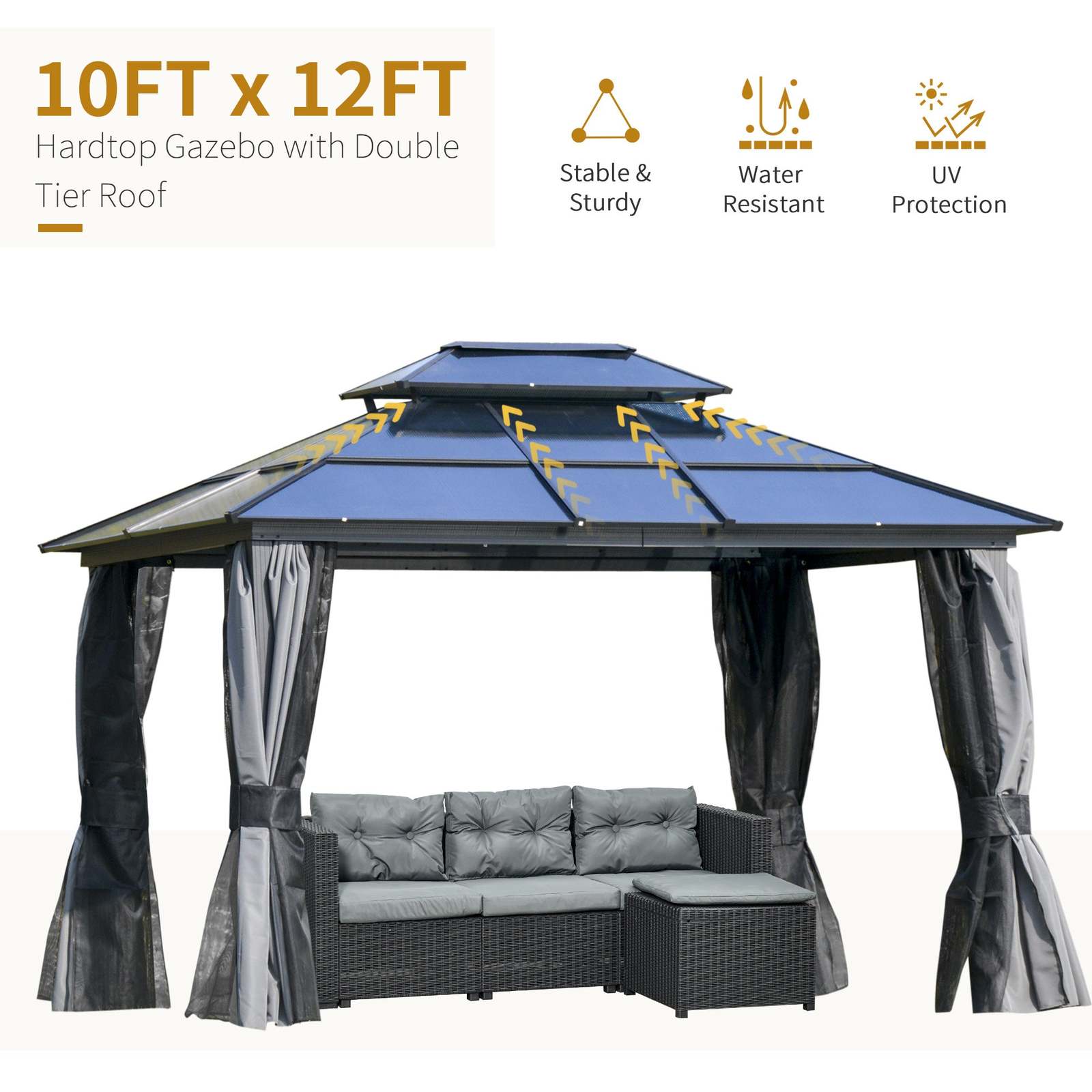 10'x12' Hardtop Gazebo | Polycarbonate Roof, Aluminum Frame, Netting/Curtains