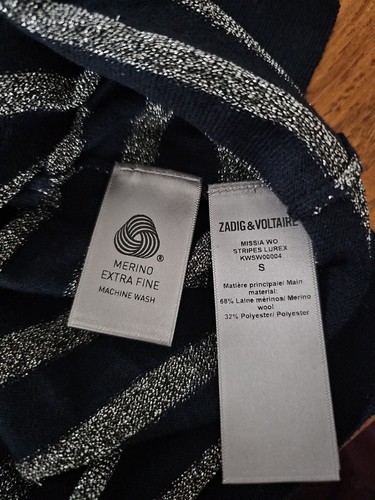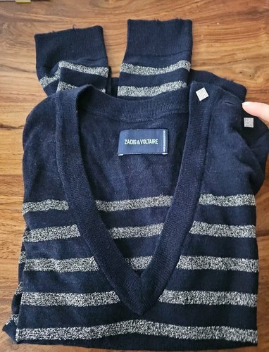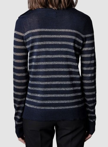 Zadig & Voltaire Missia Stripes Jumper Sweater V-Neck Pullover Top Sz S, New!