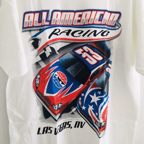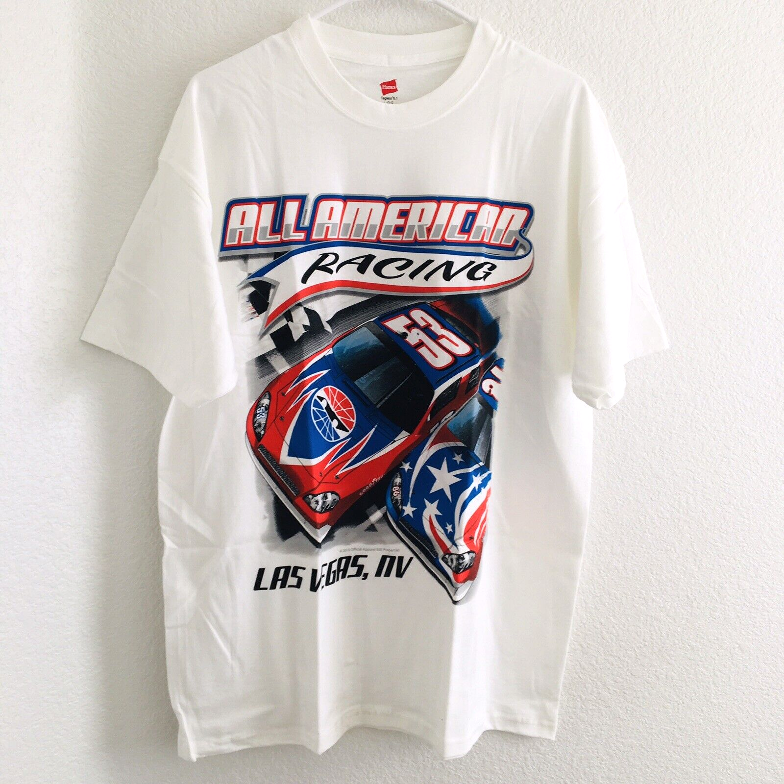 Nascar All American Racing Men SZ L White Las Vegas Red White Blue Hanes NWOT