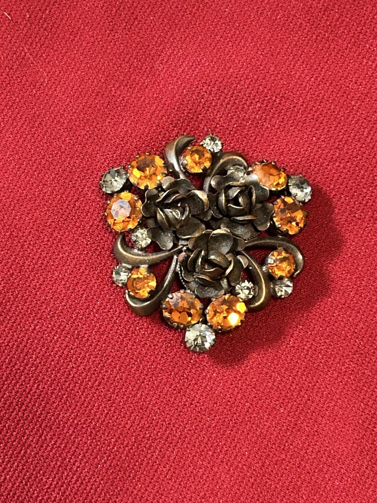 Vtg Orand & Clear Rhinestone Rose Brooch Austria J353