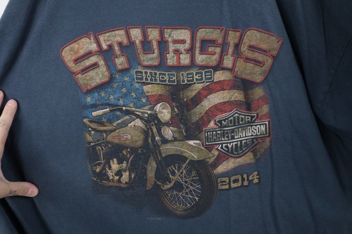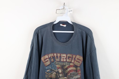 Vintage Y2K Harley Davidson Mens 2XL Sun Faded Sturgis Motorcycle T-Shirt Blue
