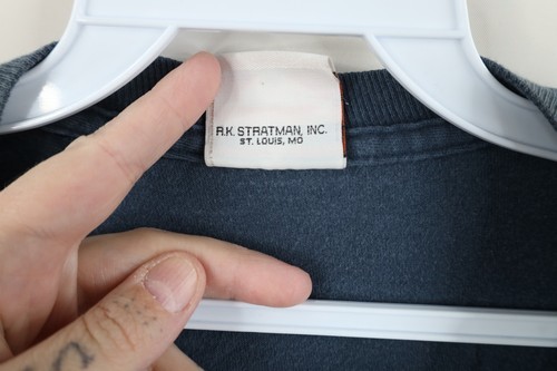 Sun faded front, back. Collar, arms discolored. Color, graphics faded. Dark spots, pilling