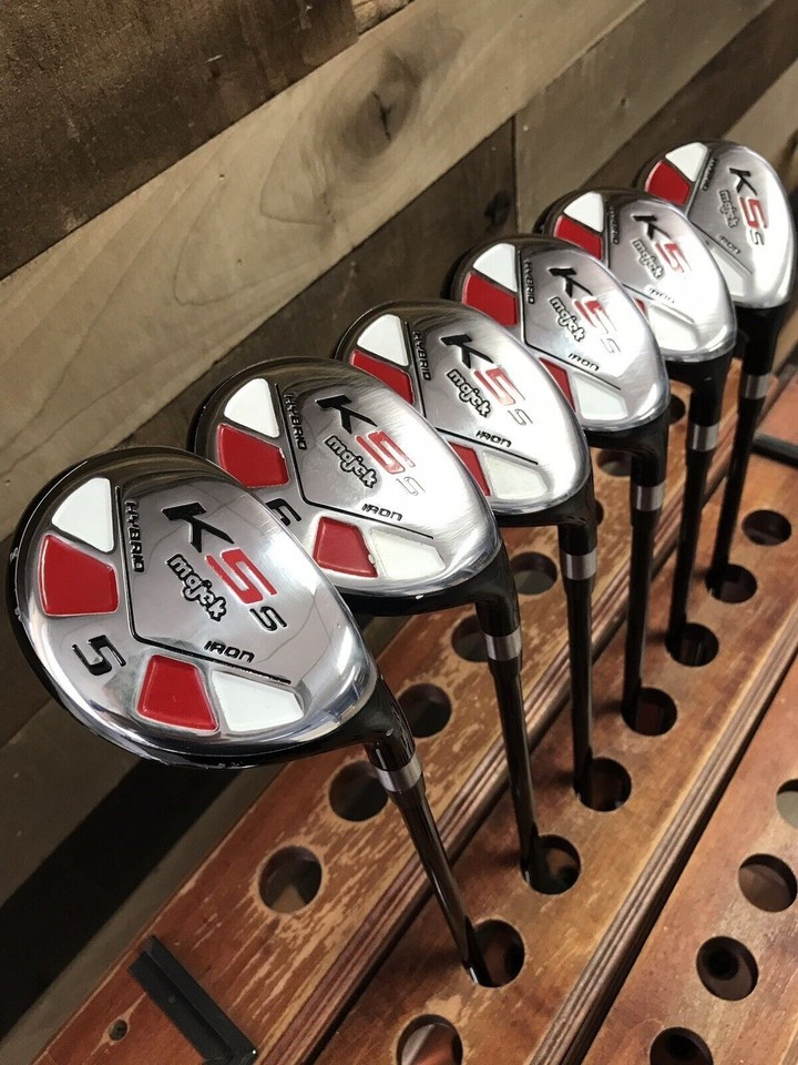 Replace Your Entire difficult to use iron set with the Majek K5 all hybrid iron set! Majekally improve your Hybrid-Iron game! Pure Golf Engineering: Majek Hybrid was Co-Engineered by members of the UCLA's engineering department. This unique relationship and pure engineering approach created the Majek All Hybrid Iron Set. Benefits of the Majek Hybrid: -More Weight Positioned Behind The "Sweet Spot" -Deeper Cavity Back Creates A Tighter Shot Dispersion, Which Increases The Accuracy On Off Center Hits. -Aerodynamic Design Creates A Reduction In Drag, Which Leads To Higher Club Head Speeds -Wide To Thin Crown Design Creates A Lower CG To Promote Higher Launch Angle For More Distance -Lightweight Premium Graphite Shaft Promotes Faster Swing Speed For Greater Distance. -Black Crown And Arrow Markers Make Alignment Easy And Eliminates Glare. Support A Local Company: Your Custom Made Majek Golf Hybrid Is Assembled By Hand In Riverside, CA, USA And Delivered Direct To Your Door.