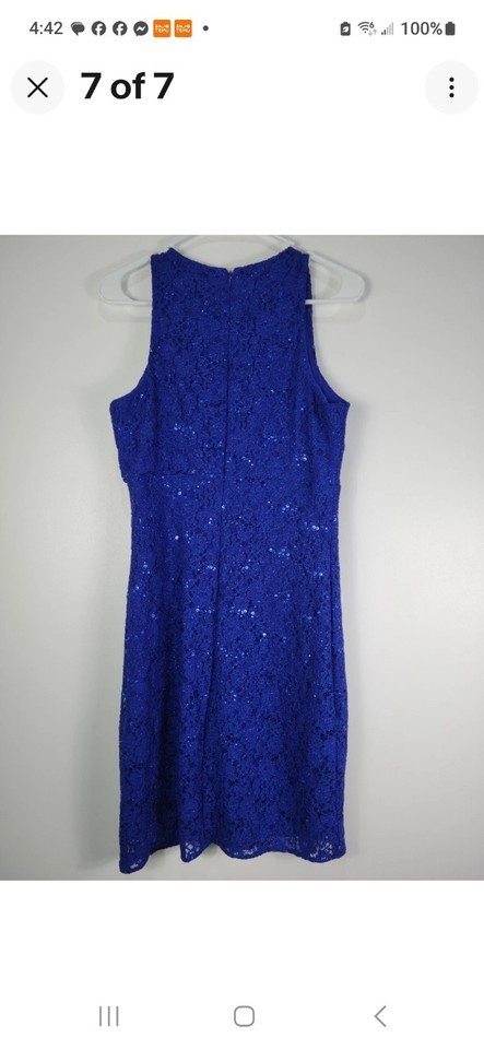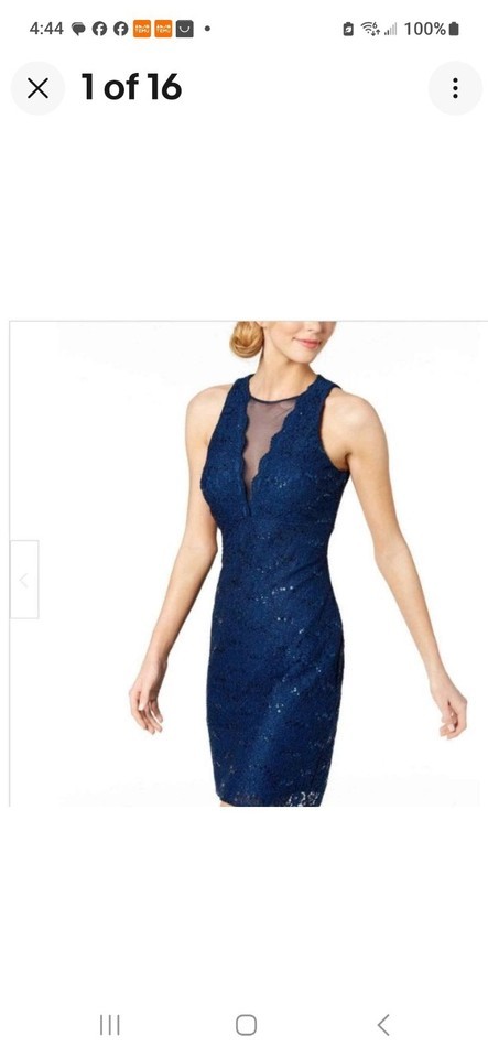 Nightway Womens Dark Blue Sequined Lace Illusion Neck Sheath Dress Sz 8 #188