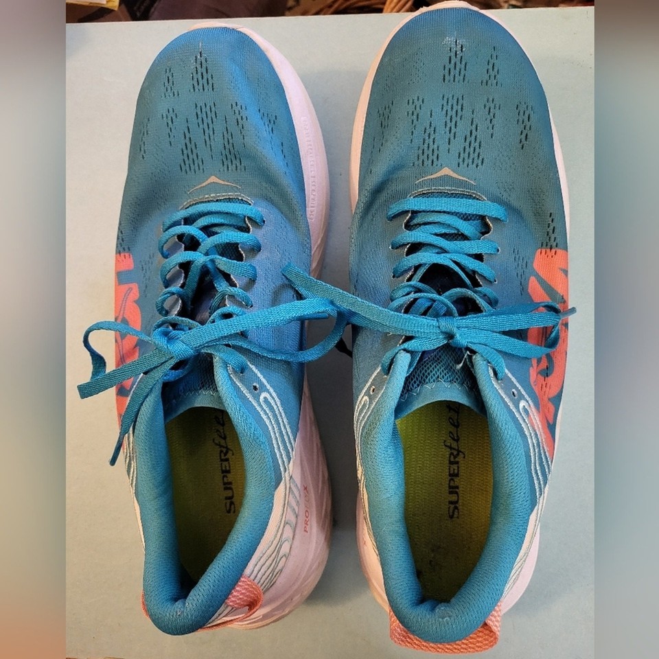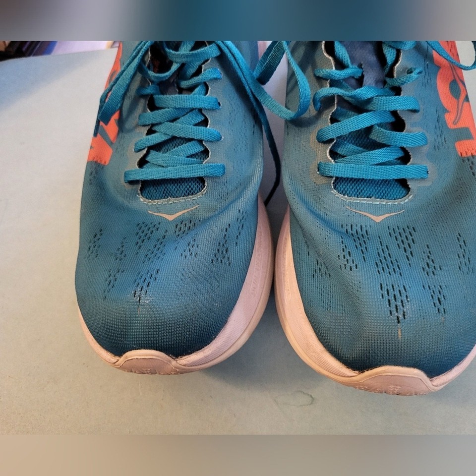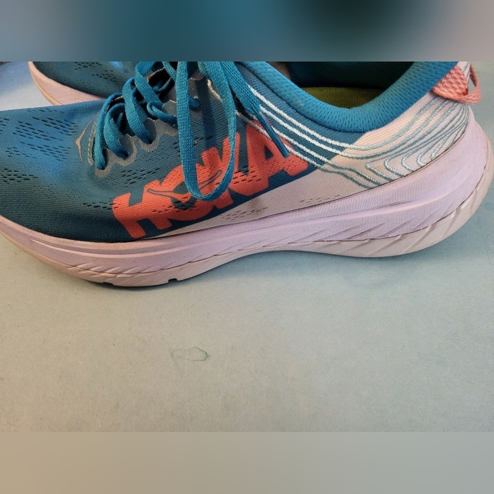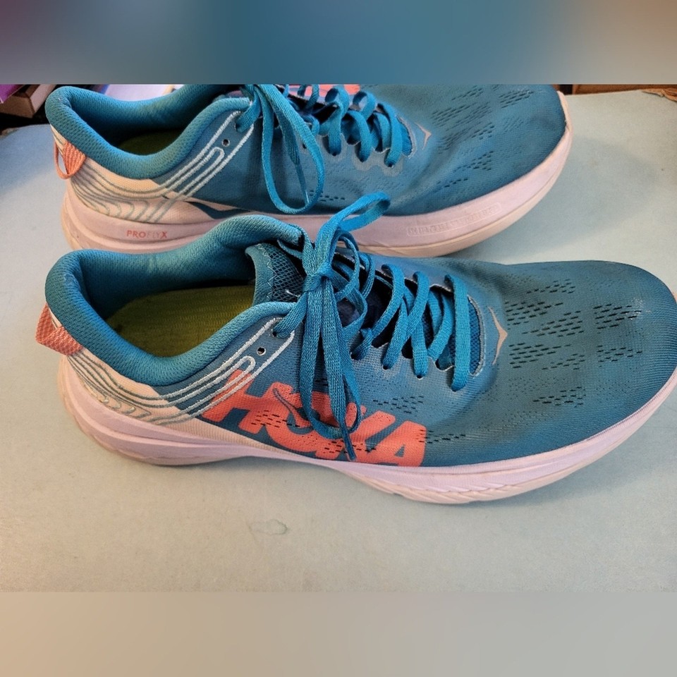 These sneakers are perfect for any woman looking for a comfortable and stylish shoe to wear during her workout routine. The blue color adds a pop of color to any athletic outfit, while the size 10 ensures a perfect fit. Don't miss out on the chance to add these Hoka One One Carbon X sneakers to your shoe collection.
