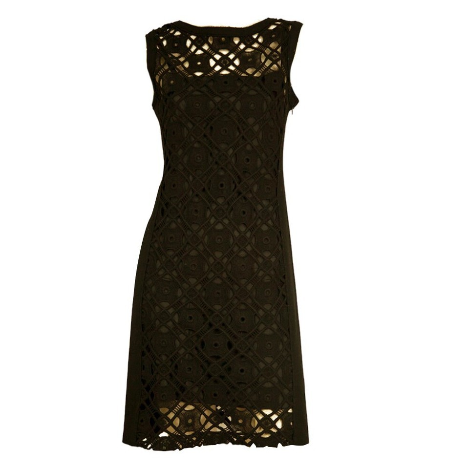 This amazing cocktail dress from Alberta Ferretti that is made of black woolen fabric lace, is an excellent addition to your closet. It also features boat neckline, mini length and comes together with a black inner lining dress. The incredible style makes this dress a definite head turner.